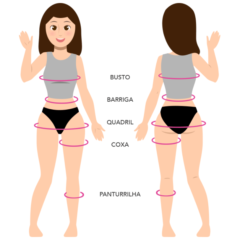 Busto: Passe a fita métrica sobre o busto, de modo que ela fique na área mais saliente.